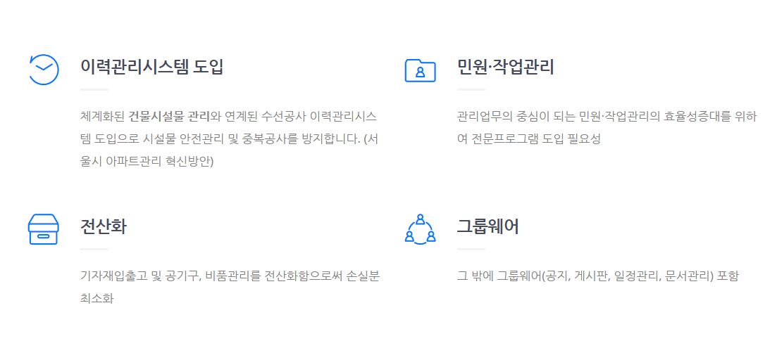 관리업무의 중심이 되는 민원·작업관리의 효율성증대를 위하여 전문프로그램 도입 필요성